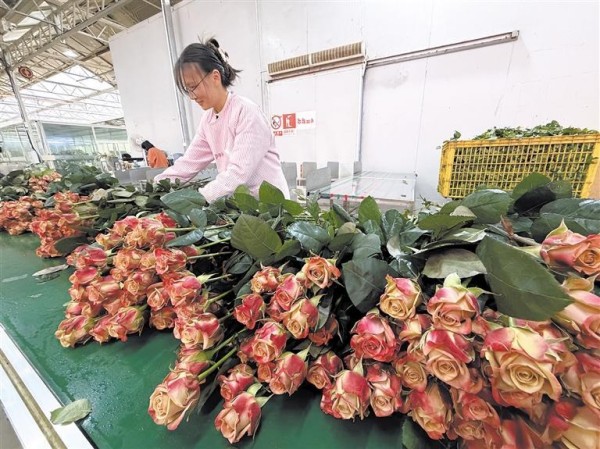 “针对今年春节我们早早就调整了鲜切花的产量和品种。”马龙爱必达园艺科技有限公司员工吕智勇介绍,基地鲜切花产品国内外销量各占总销量的50%,国内主攻北上广等城市,国外远销新加坡、泰国、俄罗斯等地。