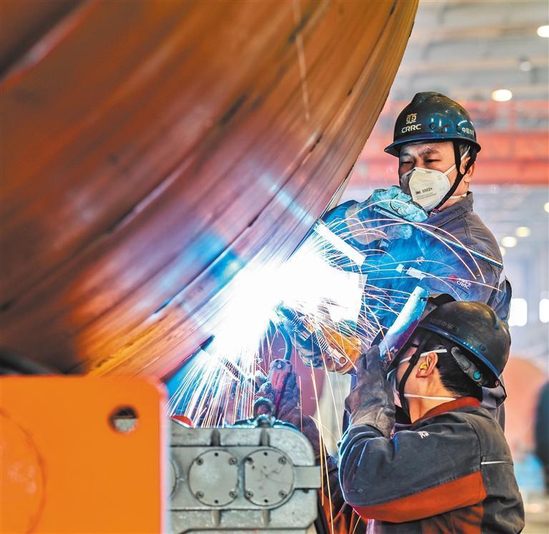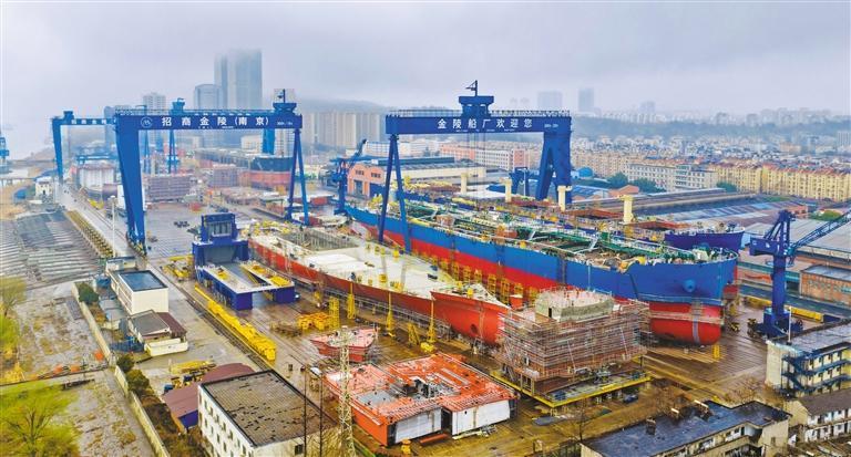 2月24日,位于江苏南京的招商工业南京金陵船厂,工人在加紧建造大型船舶。史 俊摄(中经视觉)