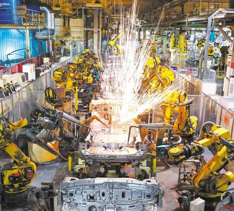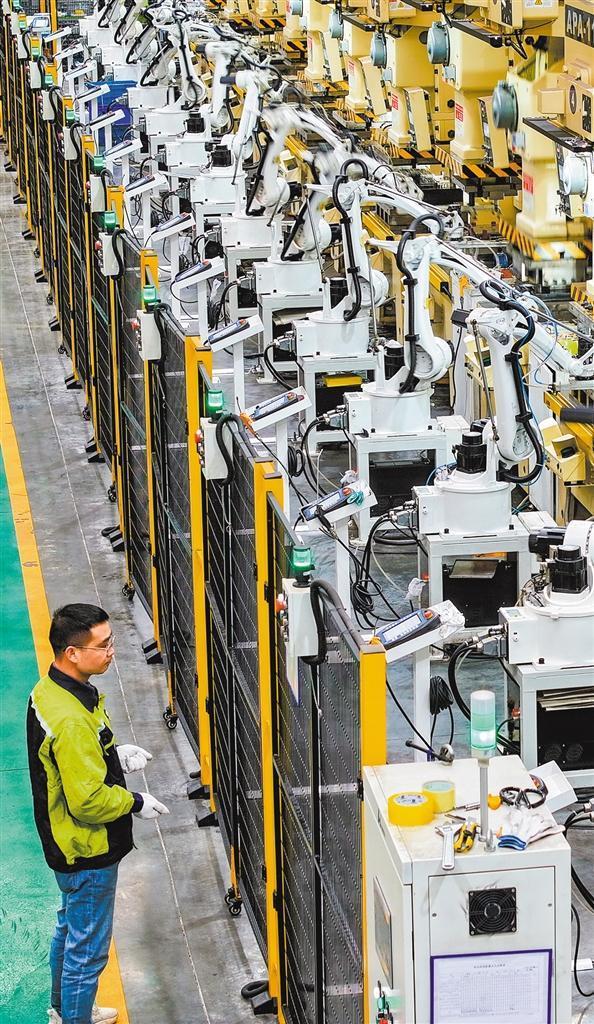 2月24日,位于重庆市巴南区大江科创城的重庆铃耀汽车有限公司车间,机械臂在焊接车身。李 攀摄(中经视觉)