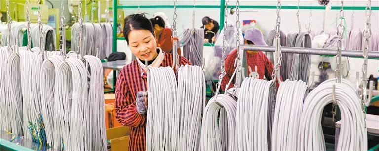 2月24日,江西省吉安市峡江县工业园区一家企业生产车间,工人在生产电线电缆。陈福平摄(中经视觉)