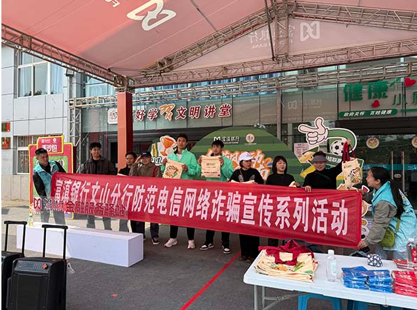 赛场之上,参赛队员奋勇拼搏、默契配合,展现出团结向上的精神风貌;赛场周边,金融宣传阵地同步搭建,热闹非凡。富滇银行文山分行工作人员化身专业金融宣传员,围绕防范电信诈骗、远离非法集资、保护个人征信、理性投资理财、银行卡安全用卡等核心知识,为参赛球员、观赛群众开展沉浸式科普。摒弃枯燥的理论说教,工作人员结合真实金融案例,用接地气的语言拆解“虚假理财”“代理维权”“刷单返利”等消费陷阱,揭露诈骗套路。同时重点普及金融消费者八大权益,提醒群众警惕非法金融活动。针对老年、青年等不同群体的金融需求和易踩坑点,工作人员精准推送风险提示,手把手指导大家辨别金融骗局,让群众在享受足球乐趣的同时,轻松掌握实用的金融知识,真正实现赛场竞技与金融宣教双向赋能、同频增效。