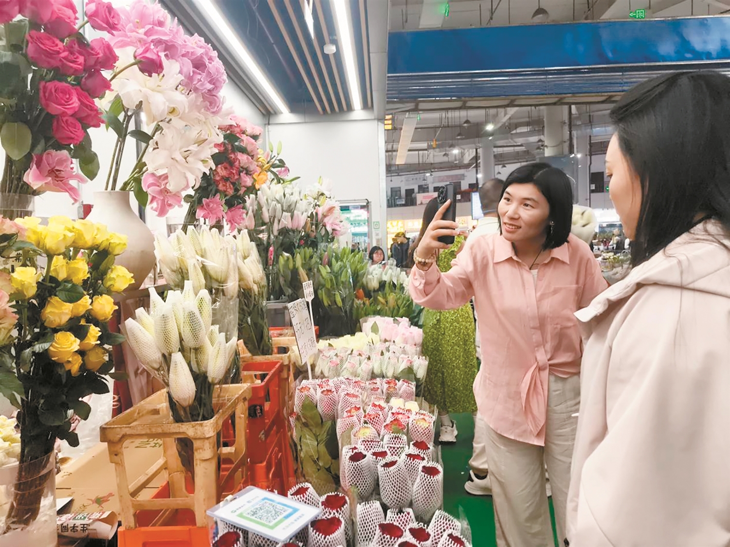 在大观篆新农贸市场、蔡家村农贸市场等地,随着气温回升,时令花材走俏且价格亲民。不少市民表示,逛菜市场顺手买把鲜花就能把“春日浪漫”带回家。(记者 杨官荣)